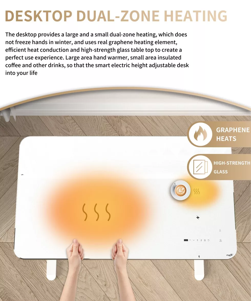 • Beirazko mahai zuria Motor bikoitzeko altxatzeko mahai elektrikoaBeirazko mahai zuria Motor bikoitzeko altxatzeko mahai elektrikoa